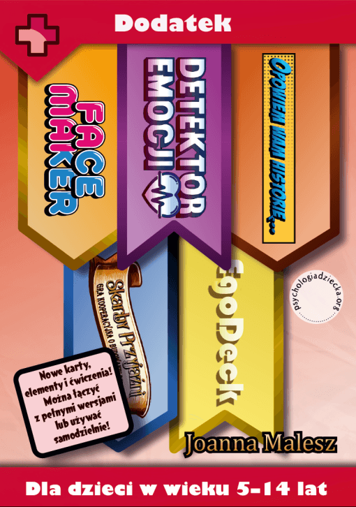 Darmowy dodatek zawiera karty, obrazki i zadania będące uzupełnieniem pomocy edukacyjno-terapeutycznych autorstwa Joanny Malesz (EgoDeck, Skarby przyjaźni, Detektor emocji, Opowiem wam historię…, Facemaker).